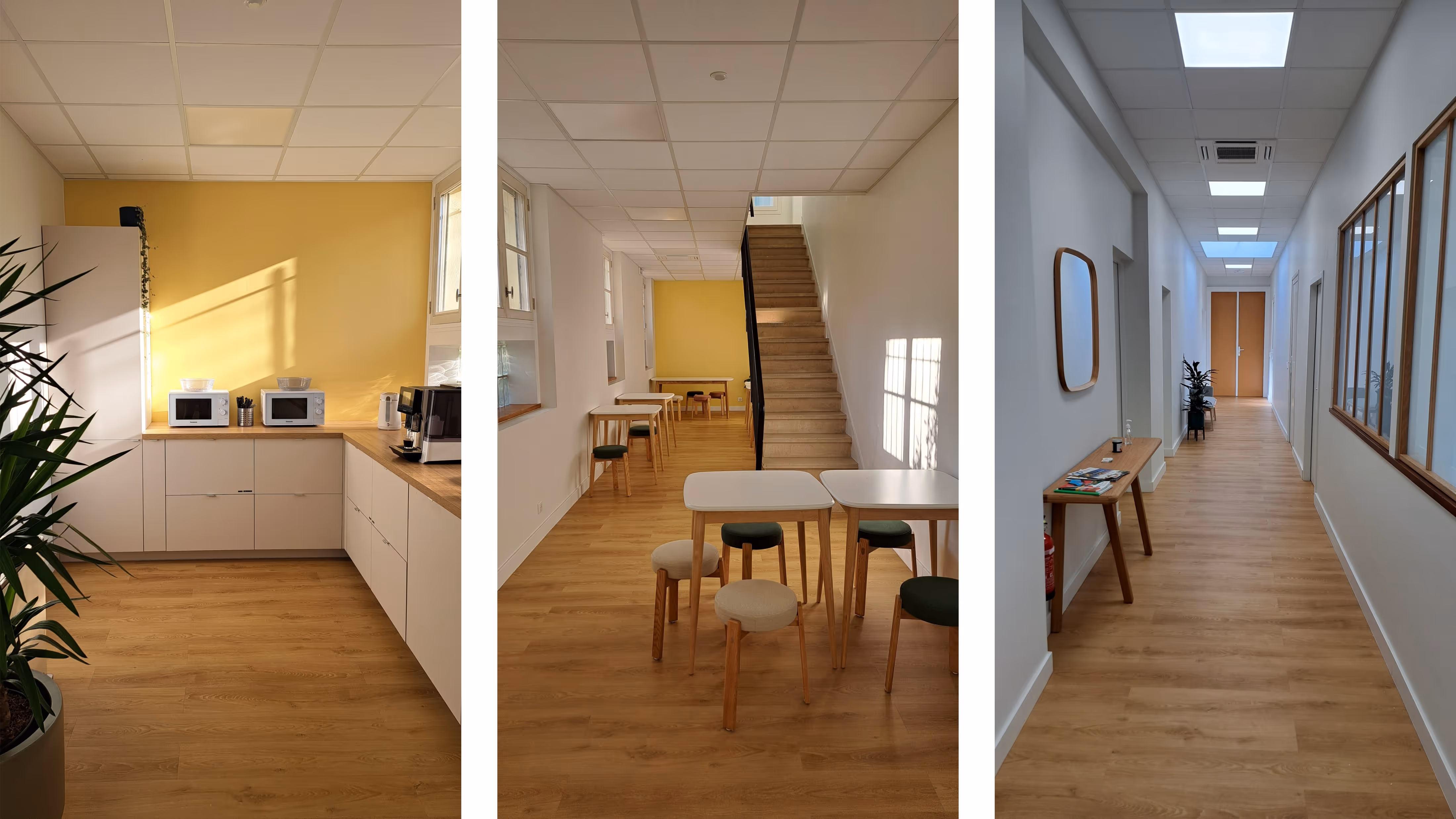 Un espace de bureaux partagés chaleureux et convivial au centre de la ville de Pessac.